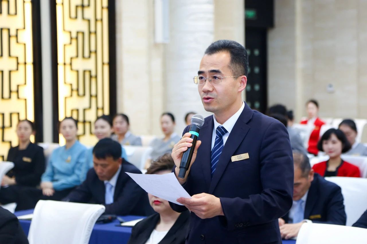 在第一季度,山东大厦以“真情匠心,开启宾客美好体验之旅”为主题,织就了无数令人难忘的服务瞬间,我们成功接待了山东省“两会”、全省抓改革创新促高质量发展大会、全省提振消费工作大会等重要活动,累计收获宾客表扬信2844封,各平台网络点评704条,携程网平均得分4.93分。这一项项数据,恰如散落的珍珠,而今天的会议,正是全体大厦人共同拾珠成串的金线。