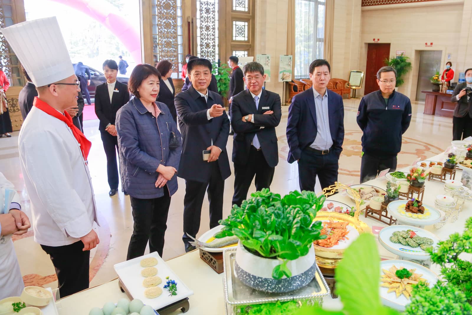 淮扬菜是中国传统四大菜系之一,与鲁菜孔府菜并称“国菜”,是“国宴”菜单主菜首选。“开国第一宴”就是以淮扬风味菜点为主,因菜品质朴、清鲜、醇和的特点,为国宴的精练简约定下基调。淮扬菜发源于扬州、淮安,大多以江湖河鲜为主料,以顶尖烹艺为支撑,以本味本色为上乘,以妙契众口为追求,蕴含“和、精、清、新”的独特理念,素有“东南第一佳味,天下之至美”的美誉。其“南北适宜、营养全面”的特点,更是让它成为了“国宴”菜单首选。此次亮相美食节的有:茴香鸡米炒凤尾虾、草头河豚三吃、鸡汁爆腌白鱼、菊花脑鸭蛋汤、白灼溧阳白芹、金陵盐水鸭、文思豆腐、朱桥甲鱼、淮安软兜、大煮干丝、淮阳蔬菜包、虾籽阳春面等60余道淮扬菜代表菜。多为南京东郊国宾馆“国宴”招待中的经典菜式,让济南食客能够有机会近距离亲身体验国宴菜品所蕴含的文化内涵。其中,有前国家主席吃过还要“再来一个”的“淮阳蔬菜包”,大为赞赏的“虾籽阳春面”;还有美国前国务卿基辛格先生在下榻南京东郊国宾馆时,因目睹软嫩如绵的豆腐如丝似线不断,惊叹厨师刀工技艺,连连击掌叫好称快的“文思豆腐”。