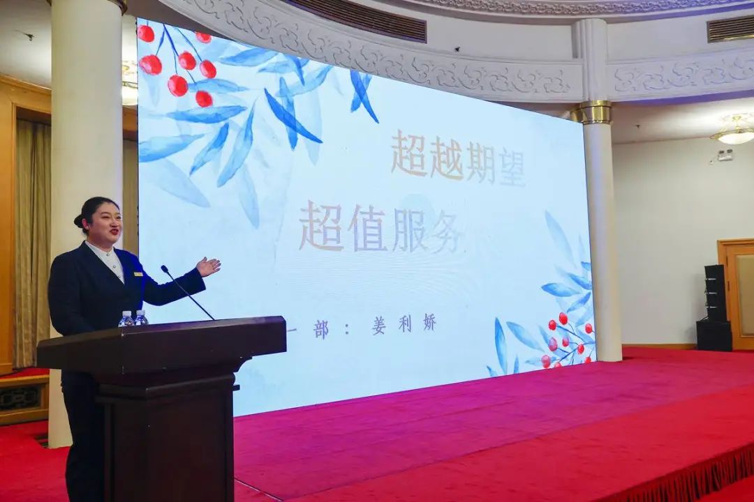 前厅部、客房部等6个部室的员工通过PPT讲述形式分享了其用心用情服务宾客的感人事迹,展现了“想客人之所想 急客人之所急”的专业素养和“干一行爱一行专一行”的职业担当,践行了“情暖乐天使fun官网”服务行为准则。
