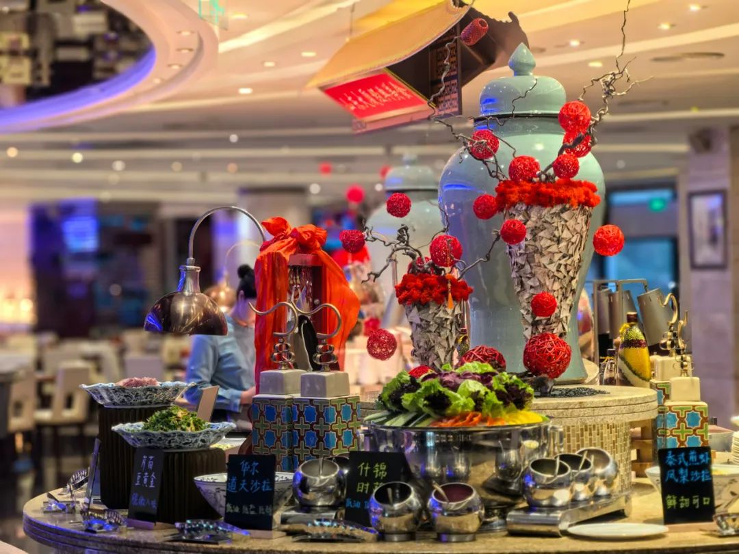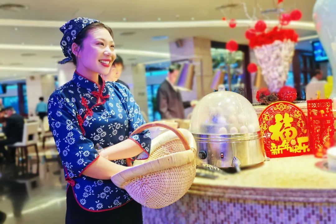 年关将至,各餐厅用心营造浓郁的节日氛围:旺旺“迎春纳福”春意展台,祝福“人寿年丰、家国兴旺”;“巳巳如意”台面主题,寓意牢记嘱托、感恩奋进,锚定“走在前、挑大梁”的担当。恰逢小年,与会来宾无法与家人团聚,餐厅布置了DIY水饺操作台,大家一起包水饺,如同回到家庭大厨房,其乐融融共度小年夜。