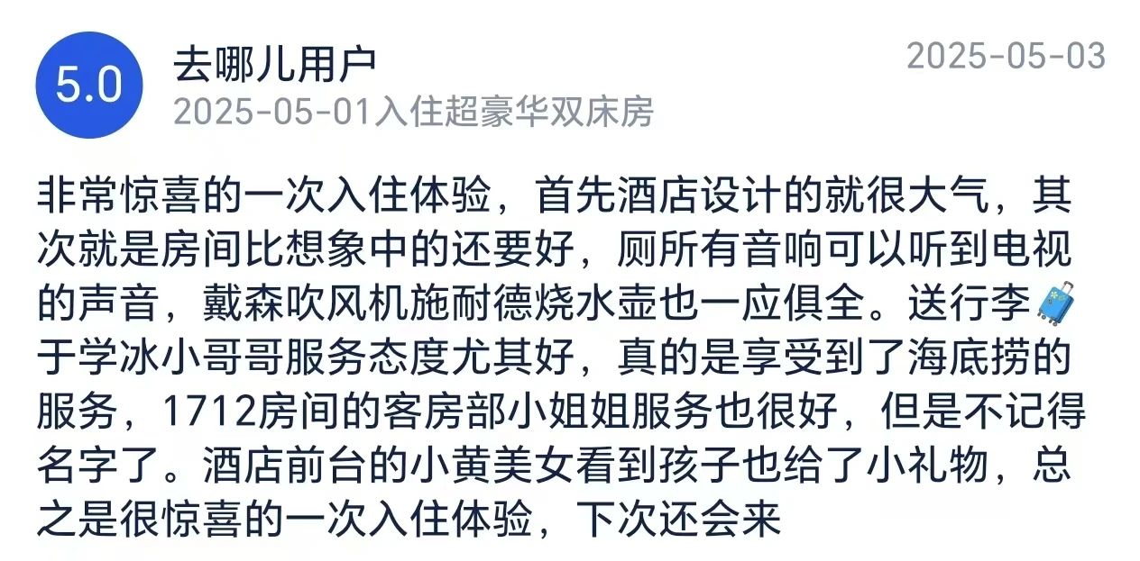 从晨光熹微到灯火阑珊,每一位大厦人坚守岗位,以专业与热情续写假日华章,为每一位宾客带去超越期待的,个性化服务和入住体验,让每一位入住酒店的宾客都有温馨舒适,宾至如归的感受,再次收获大波真挚的好评。