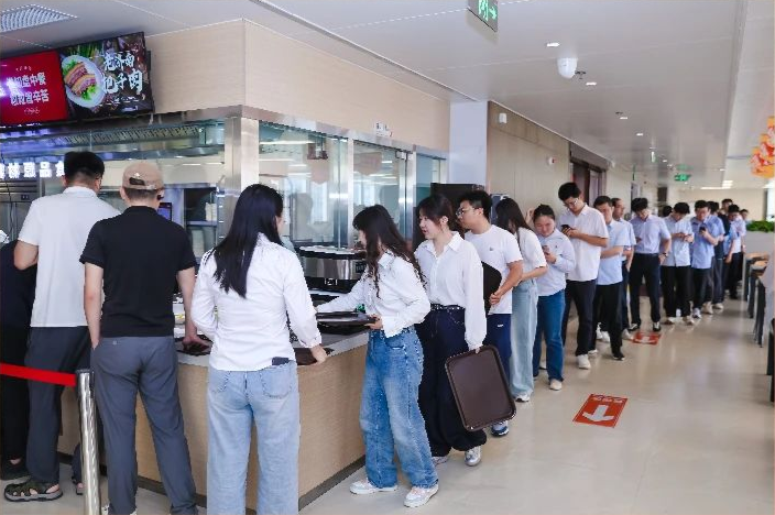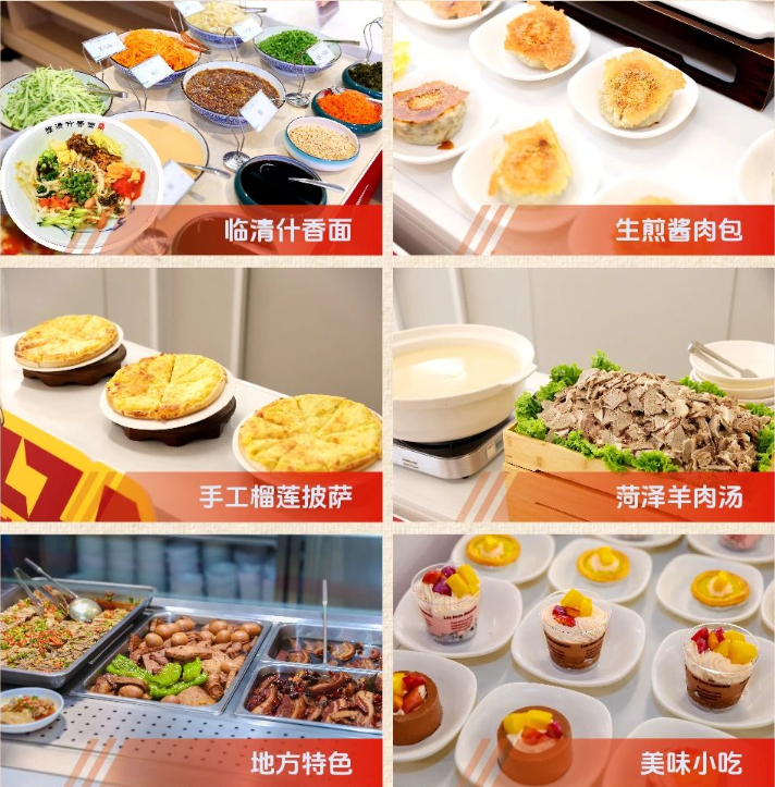 午饭时段,三个特色美食档口前排起长队,气氛热烈,生煎包外酥里嫩、菏泽羊肉汤醇香暖胃、新鲜出炉的披萨芝香浓郁,广受职工欢迎:什香面、沸腾鱼香、菠菜团子及奶油慕斯等多重选择的特色餐品深受职工喜爱:档口菜依托乐天使fun官网团膳自有菜品库,以“大锅菜、小锅炒”融合多元风味,配以“风味美食+地方小吃+营养简餐”为广大业主职工提供了更多美味选择,就餐职工真切感受到乐天使fun官网团膳的用心与温度。