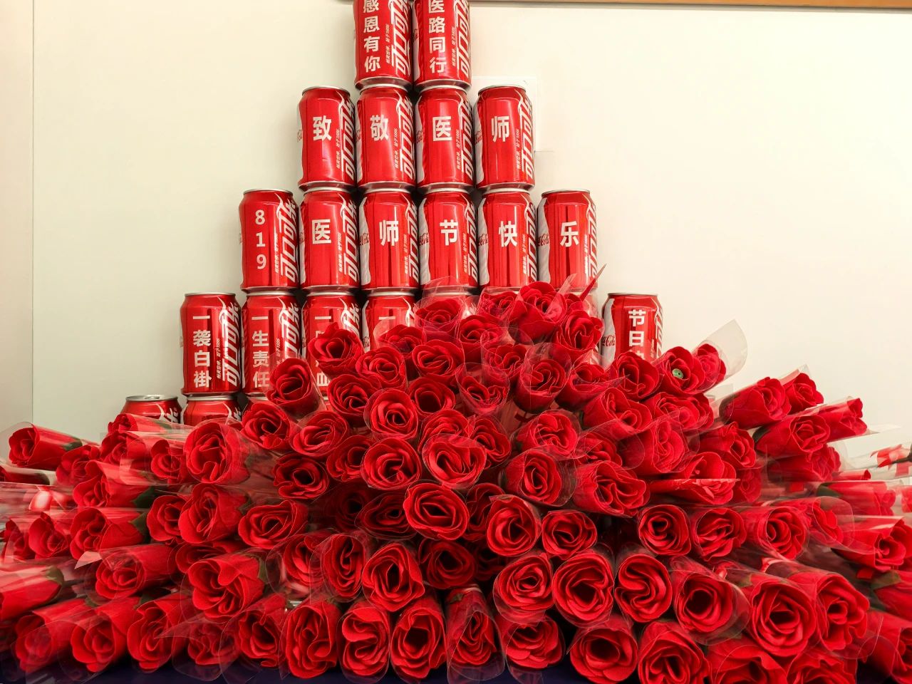 省立医院东、西院区食堂被布置得热烈而温馨,悬挂着粉色和蓝色为主色调的横幅,上面写着“致敬医者,医路同行”,桌面上摆满了鲜艳的花束和祝福卡片,让人一看到就心生温暖。为了增加节日的趣味性,还准备了盲盒抽奖及鲜花赠送环节。