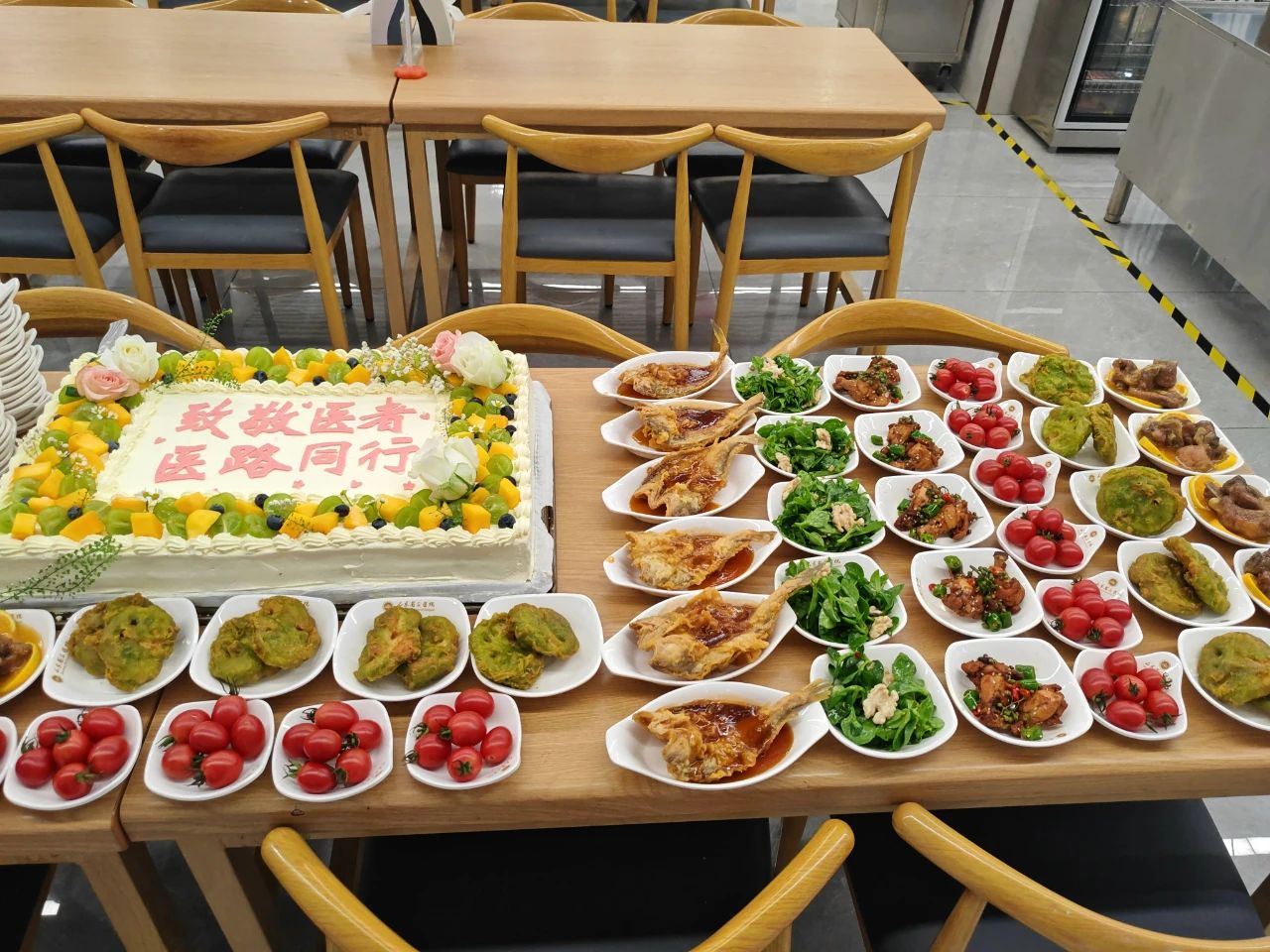 活动当天,乐天使fun官网团膳准备了特色菜肴——以健康营养为主打的便餐,比如清炒时蔬、瘦肉粥、健康沙拉等,既体现出关爱健康的理念,也符合医师节的主题。更有特别定制的主题蛋糕,甜蜜而感人。在活动现场,医务人员们纷纷表示,医师节不仅是对他们工作的肯定,更是对他们默默奉献、救死扶伤精神的最高褒奖。现场气氛既庄重又欢快,餐厅人员一起用掌声和笑声真诚感恩医务人员的无私和奉献。