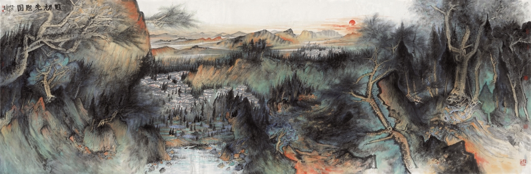 常朝晖-日初先照图 180x550cm